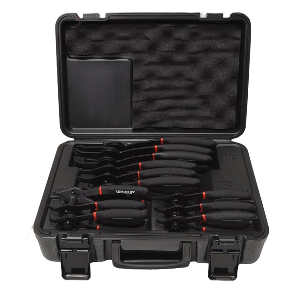 - 【Comprehensive Professional-Grade Set】:WISEUP 12-piece snap ring pliers set includes 6, 8, and 9-inch pliers in sizes 0.038", 0.047", 0.070", and 0.090", with 45°, 90°, and straight tips, all housed in a Storage Case for all your snap ring installation and removal tasks