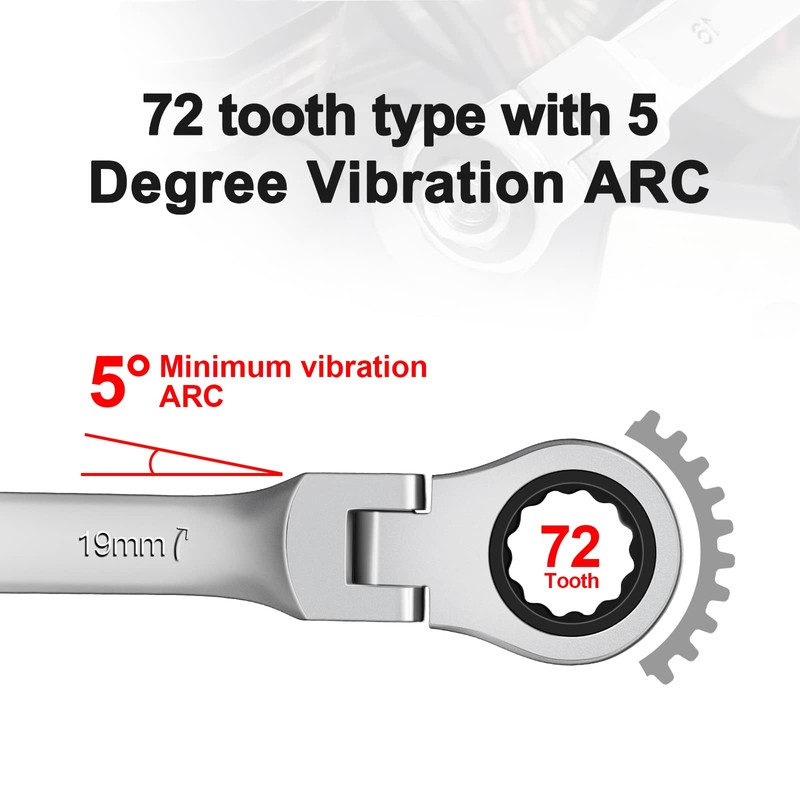 - 【5 ° Working Swing Arch】 Ratcheting wrench is composed of 72 teeth, which only needs 5 ° to rotate once. The angle can be reset without removing the Ratcheting wrench set. Ratchet cycle replaces repetitive actions, which is fast and labor-saving.