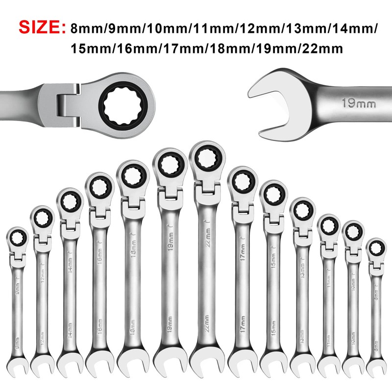 WISEUP Flex-Head Ratchet Wrench, 22mm Wrench, Industrial Anti-slip Labor-saving Combination Wrench, Mechanic Automotive Hand Tools