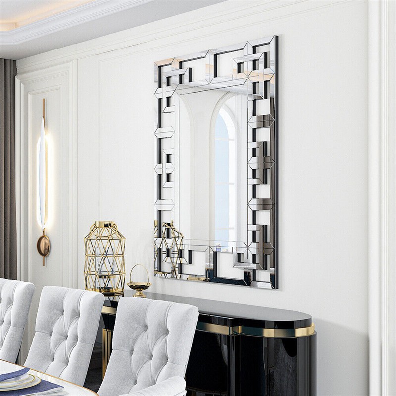 Wisfor Wall Decorative Home Mirror Rectangular Large Silver Vanity Beveled Glass Edge