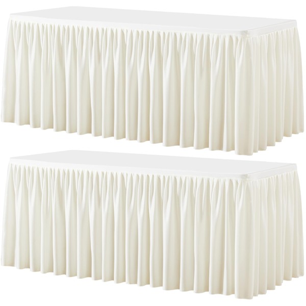- 【Outstanding Pleated Tablecloth】: Compared to the old version table covers, this cream table clothes are designed with customized and pleated table skirting, beautifully draped tablecloth-It looked like a wedding dress on the table. Make your table more professional and elegant, and adding a touch of simplistic beauty. The fitted tablecloth and skirt will turn a plain plastic folding table into a lovely buffet table. 8ft cream table cover with table skirts is suitable for 6 foot rectangle tables (96 L x 30 W x 30 H)