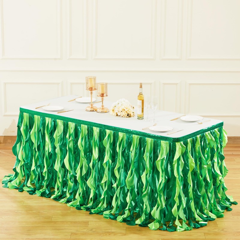 - 【Curly Willow Tutu Table Skirt Design】The green sequin desk skirts with green curly wicker and sequin curly wicker matching design instantly brightens up your ordinary table, giving the table a new feel to the decor while adding a unique sense of ambiance to your party, and impressing your guests with the naturally drooping wavy sequin green ruffle tablecloth. Elegant and beautiful sparkling green table cloth are designed to decorate for a variety of party themes. Manteles de mesa de tela para fiestas
