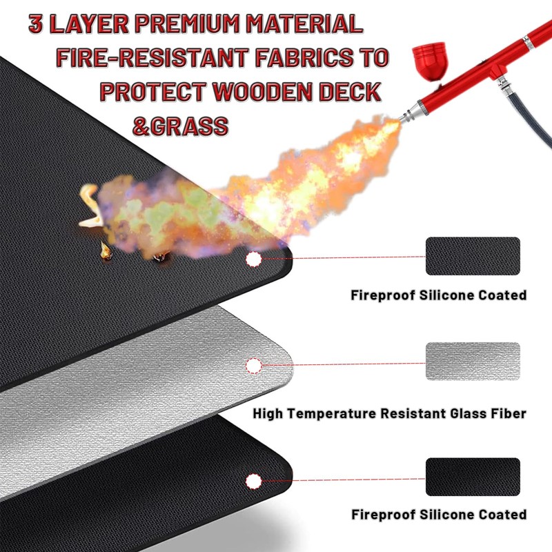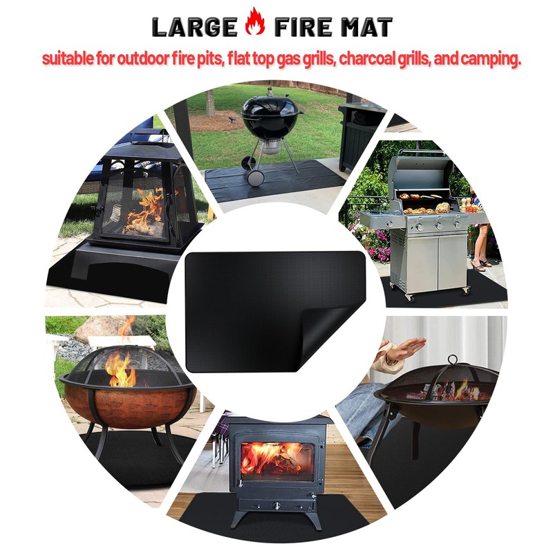 - 【QUALITY FIREPROOF MAT】- Perfect fit for fire pits, flat top gas, propane burners and charcoal grills of all shapes.To ensure the best fit for your grill, please measure the width and depth of your grill before placing the order. Do not place the heat source directly on the fire mat and keep at least 5 inches of space between the fire pit and the mat.