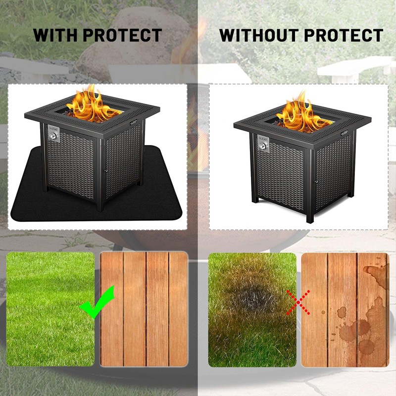 heat-resistant fire pit mat is perfect for protecting your patio, lawn, composite decking, grass, yard,wood, cement, brick, and decorative stone.
