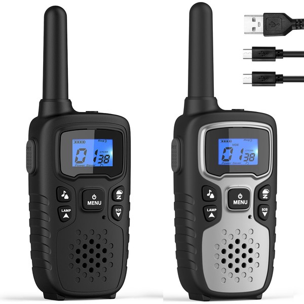 Wishouse Walkie Talkies for Kids Adults - Long Range Rechargeable 2 Way Radios,Gift,Hiking Accessories Camping Gear with Lamp,SOS Siren,NOAA Weather Alert,VOX,Easy to Use 2 Pack