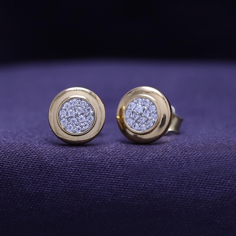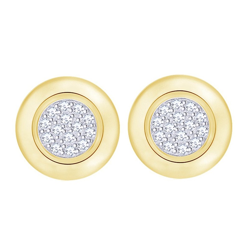 Wishrocks Round Cut White Cubic Zirconia Circle Disc Stud Earrings with Push Back Jewelry for Women in 14K Yellow Gold Over Sterling Silver