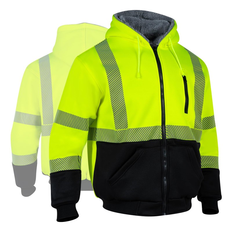 The classic zipper design is very convenient for dressing and undressing.The 360°high reflective strip is designed to ensure safety during work construction, while the hooded design and wool fleece are used to keep warm in winter.The reflective strip of this coat is ANSI/ISEA 107-2020,Type R,Class 3 standard.
