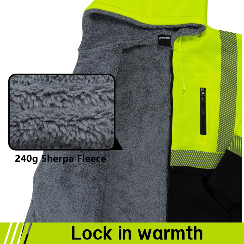 WISIGO High Visibility Safety Jacket ANSI Class 3 Reflective Zipper Hooded Sweatshirt for Men Work Construction(Yellow,4XL)