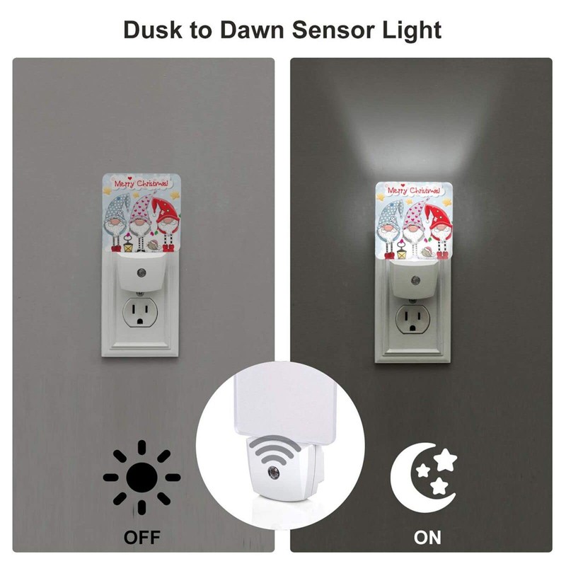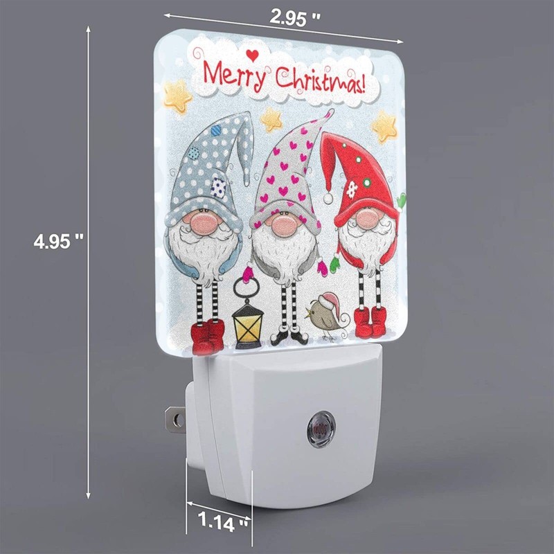 Wisongangs Merry Christmas Three Gnomes Celebrating Night Light Set of 2, Plug-in LED Nightlights Auto Dusk-to-Dawn Sensor Lamp for Bedroom Bathroom Kitchen Hallway Stairs Decorations