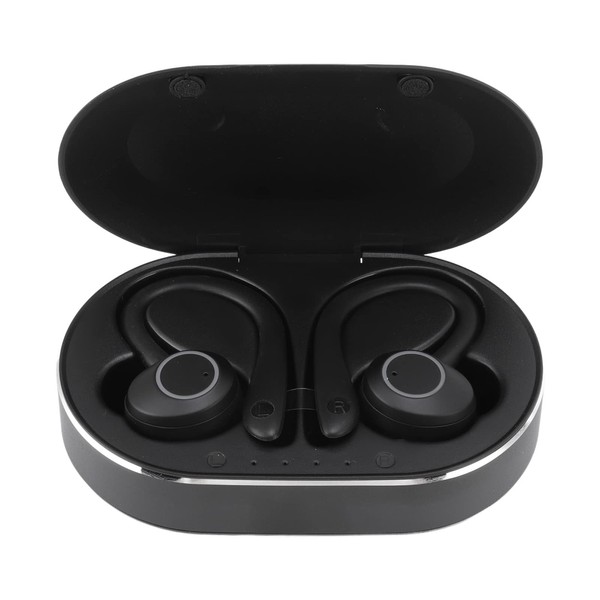 Wisoqu Bluetooth Earphone, Waterproof Stereo Noise Cancelling Earbuds with Mic LED Indicator, 120H Long Playtime, Earhooks Headphones for Driving Sports Travel (Black),