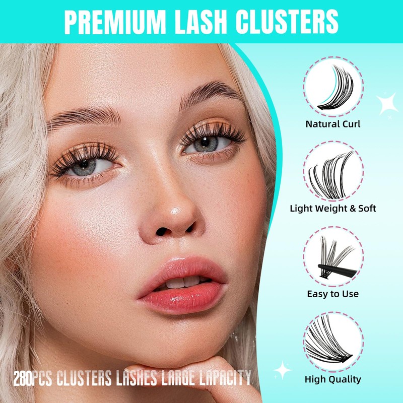 - Wispy lash clusters: 280 pieces 40D-10 mm individual eyelashes in one tray. Each eyelash extension is processed with fine craftsmanship to ensure their natural fit. Easy to put on cluster eyelash extensions, beautiful results, and eyelash clusters do not fall apart easily. You can freely assemble them according to your needs and create different beautiful looks as you like.