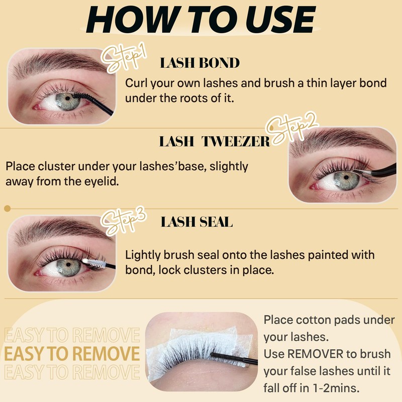 - Soft Cotton Band: Upgraded technology ensures them will not break when removed with tweezers and can be worn repeatedly many times. Please use tweezers to hold the entire lash bands to remove the eyelash clusters.