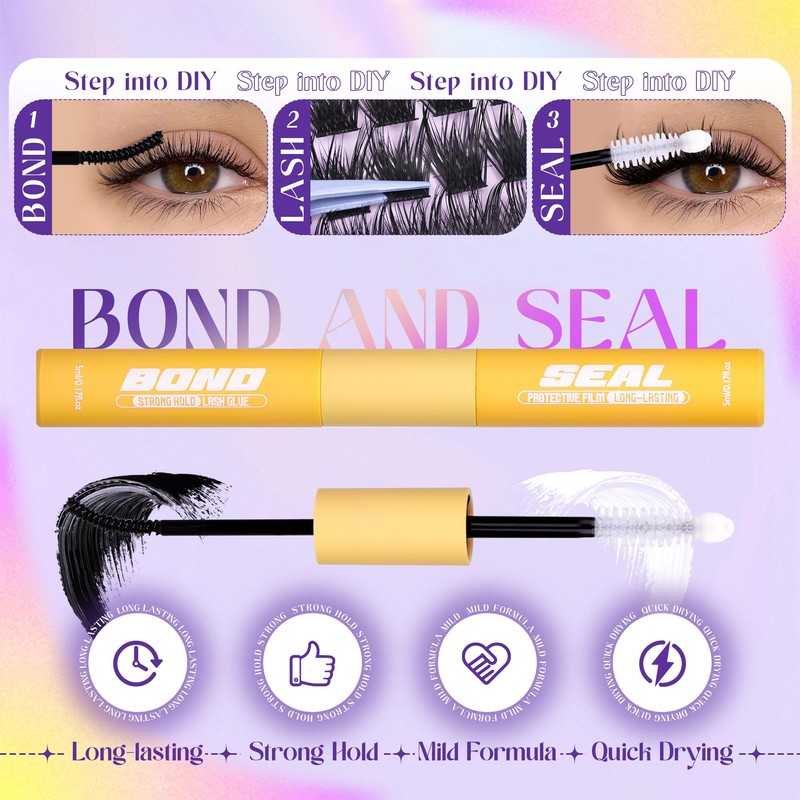 - DIY Lash Perfection Kit: Our eyelash extension kit includes everything: premium eyelashes clusters, gentle bond and seal glue (long-lasting, strong hold, quick-drying), and precision tweezers. Achieve salon-like lash extension results at home in 5 minutes.