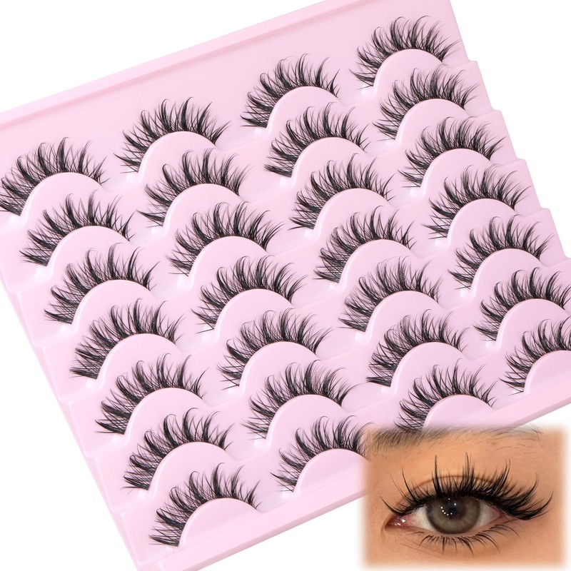 Wispy Lashes Cat Eye Natural False Eyelashes Strip Manga Fake Eyelashes with Invisible Eyelash Band Anime Asian Style False Lashes 14 Pairs Manga Lashes Pack