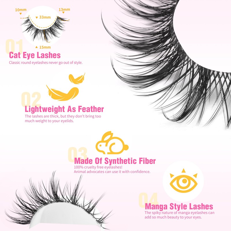 - Versatile Cat Eye Design for All Eye Shapes: Designed with shorter inner corners and longer outer corners, our natural anime eyelashes feature a classic cat eye style suitable for any eye shape. This unique design adds a touch of sexy cuteness, making your eyes stand out beautifully with a hint of playful charm.