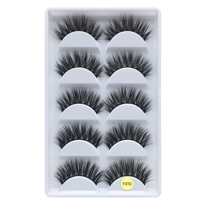 Wispy Lashes False Eyelashes Natural Look Short Fluffy Faux Mink Eyelashes Wispies Ripple Strip Lashes Pack, 5 Pairs (F810-11-15mm)