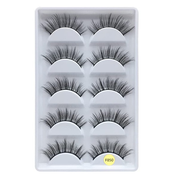 Wispy Lashes False Eyelashes Natural Look Short Fluffy Faux Mink Eyelashes Wispies Ripple Strip Lashes Pack, 5 Pairs (F850-11-14mm)