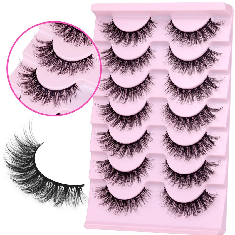 Wispy Lashes Natural Look False Eyelashes with Lash Glue Cat Eye Lashes Kit Lashes Extension with Eyelash Glue Short Mink Lashes Pack, 7 Pairs with Clear Lash Glue by wiwoseo | wiwoseo