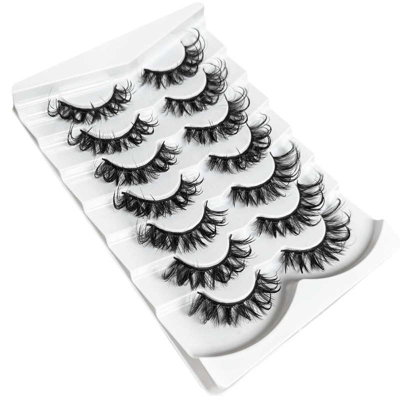 Wispy Lashes Wet Look NINGLASH D Curl False Eyelashes Natural Look Cat Eye Lashes Fake Eyelash Pack 18mm Faux 3D Mink Lashes Strips 7 Pairs