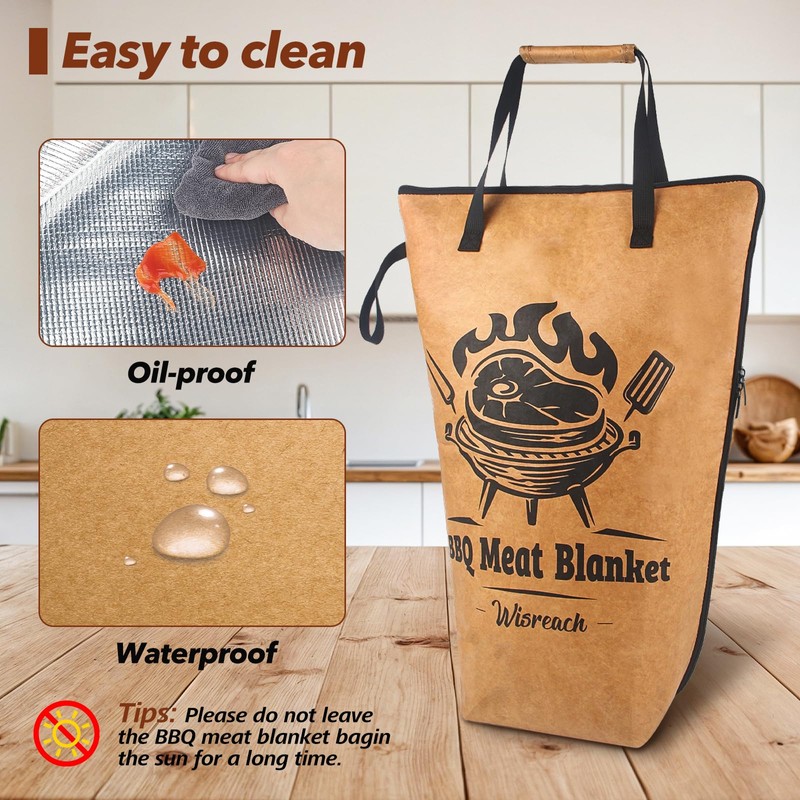 Wisreach BBQ Blanket for Resting Meat, 21in Reusable Insulated Resting Bag, B...