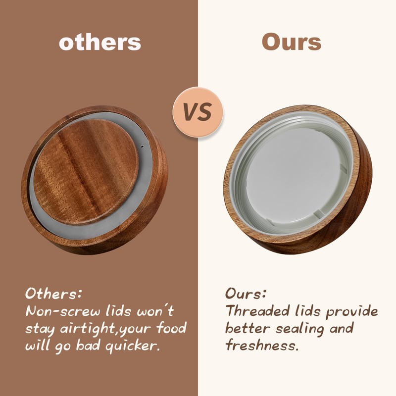 - 【Effortless Care for a Lasting Shine】:Cleaning is a breeze with this jar. The high-quality borosilicate glass is stain-resistant and won’t retain odors, making it easy to clean by hand or in the dishwasher. The wood lid, while durable, is best cleaned by hand to maintain its natural look and longevity. This glass jar with airtight lid ensures that your ingredients stay fresh without the hassle of difficult cleaning routines
