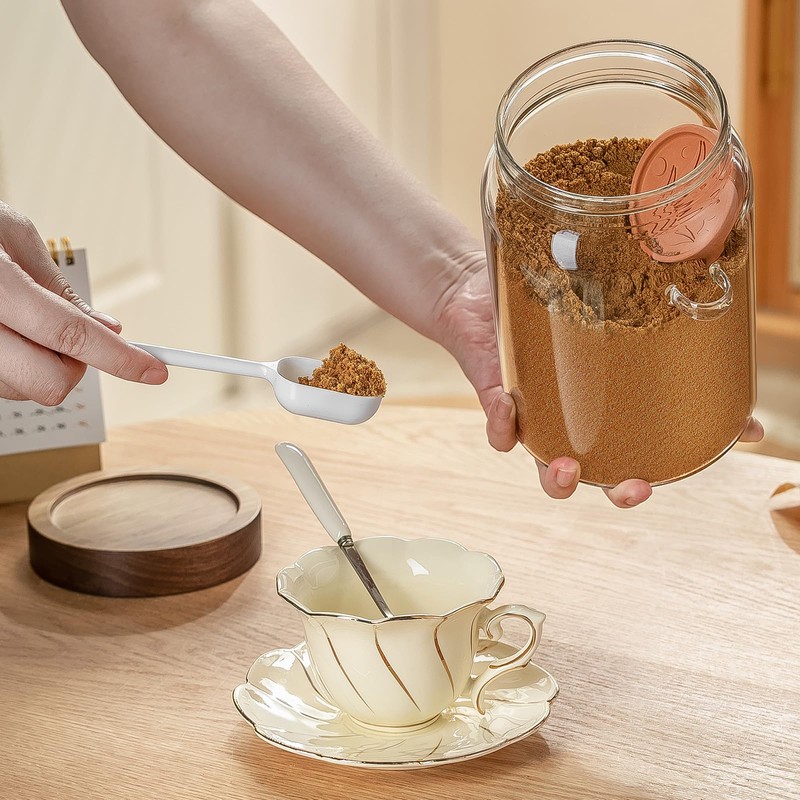 - 【Never hunt for a spoon again!】Our jar includes a convenient spoon, making it easy to measure your sugar, coffee, or any other ingredients. The glass jar with lid and spoon is designed for convenience, while the high-borosilicate glass is crystal clear, allowing you to see exactly what’s inside. Whether you use it as a sugar jar or brown sugar container, this jar makes access and organization simple