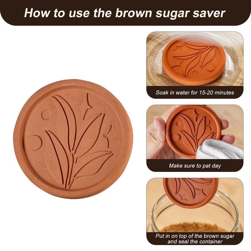 - 【High Quality Terracotta Sugar Saver】: Brown Sugar Container comes with a complimentary dry, moisturizing clay tablet. Soak in water for 5 minutes and then place in brown sugar container to keep brown sugar softer longer. Made from natural, food-safe clay, they’re also great for keeping other items like cookies and dried fruits fresh. This set is a must-have addition to your brown sugar keeper collection.