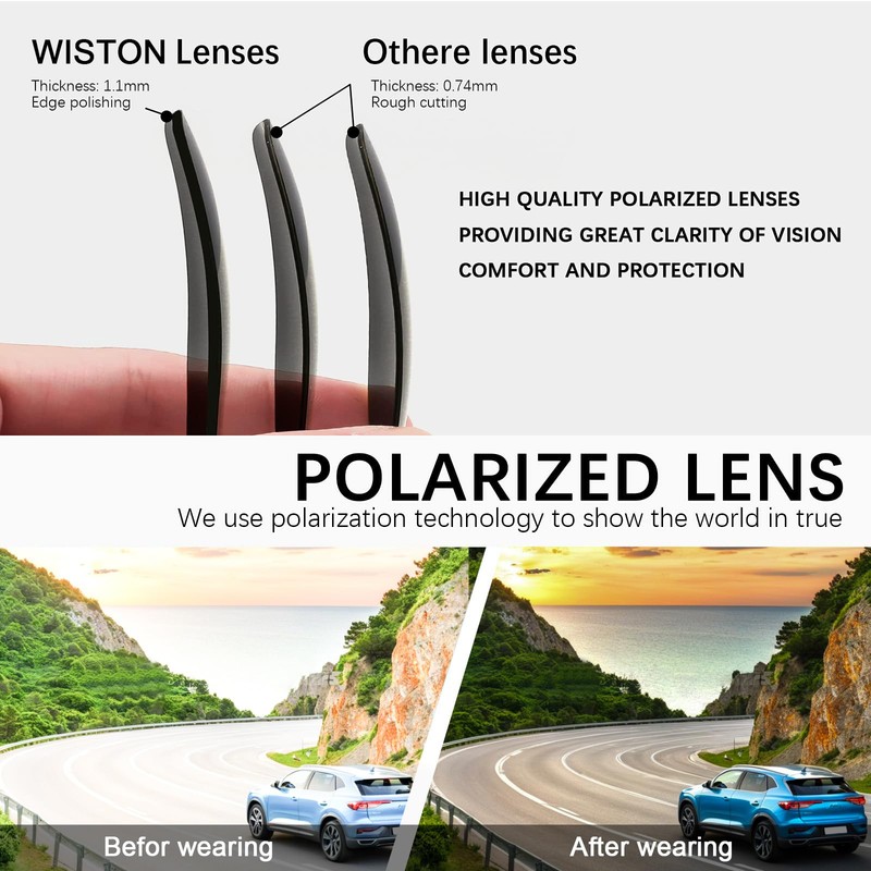 - Polarized Protection & UV400 Safety: These WISTON running sunglasses for women and men offer superior polarized lenses, providing full UV400 protection to shield your eyes from harmful UVA and UVB rays. Perfect for outdoor activities, they reduce glare and offer clear, safe vision.