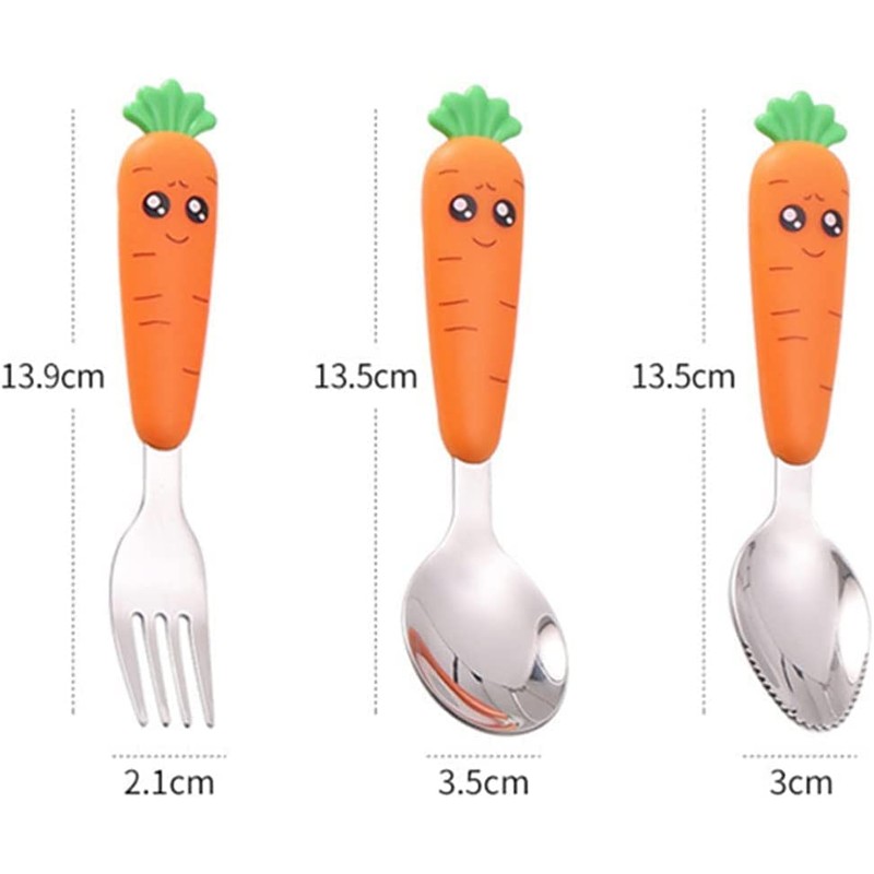 - Children can use it: the flat carrot spoon and fork handle are suitable for children to properly pick up food. It is suitable for children aged 18 to 72 months. We believe that our beautiful fork and spoon set will become one of the baby tableware sets your family has owned for many years.