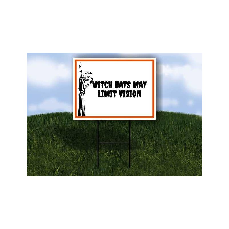WITCH HATS MAY LIMIT VISION Halloween Skeleton UP ARROW 1 Single Sided 18x24 in Yard Road Sign w/stand