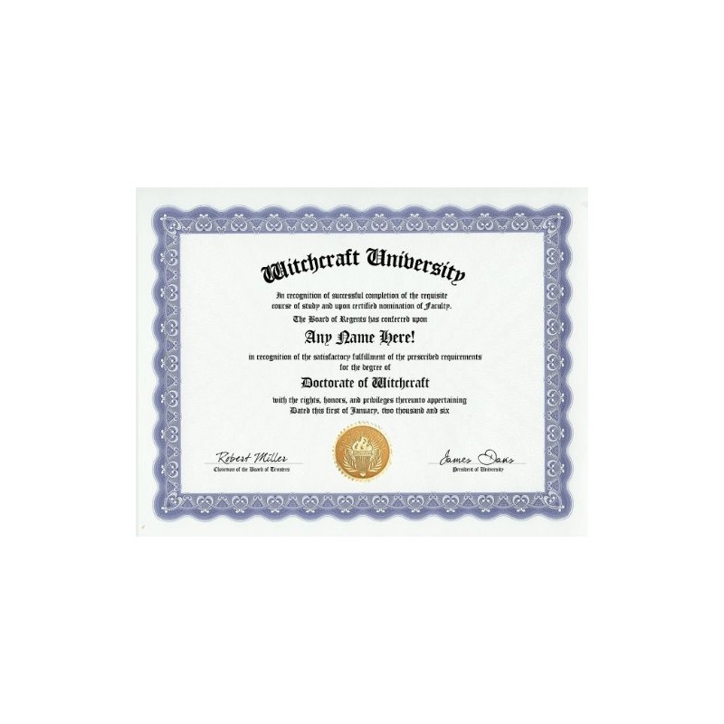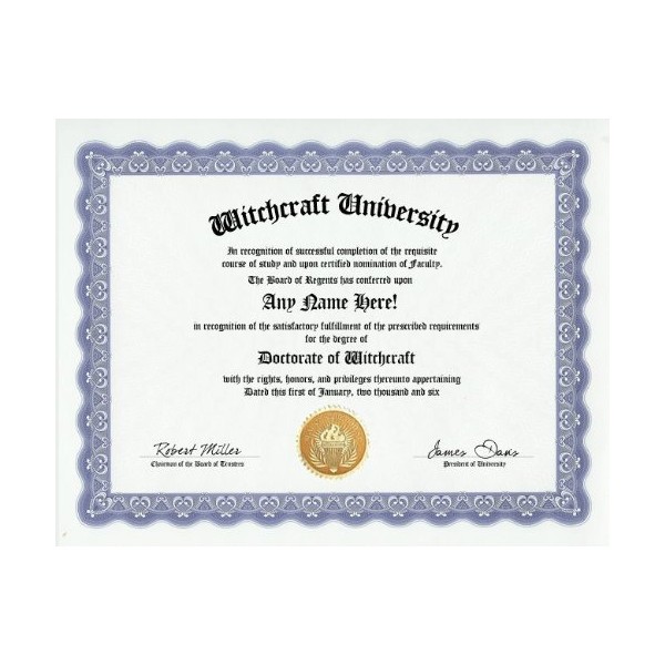 Witch Witchcraft Degree: Custom Gag Diploma Doctorate Certificate (Funny Customized Joke Gift - Novelty Item)