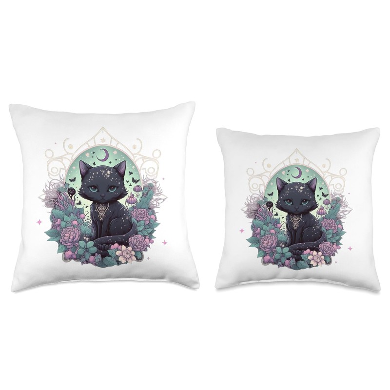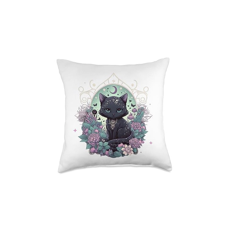 Witchy Whiskers Witchcraft and Whisker: A Cat Design for The Modern Witch Throw Pillow, 18x18, Multicolor
