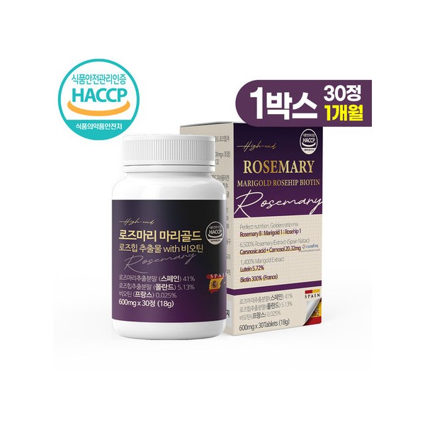 하이엔드 로즈마리 마리골드 로즈힙 추출물 with 비오틴 600mg x 30정 1박스 분말 가루 비오틴
