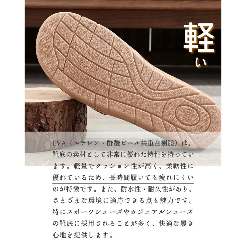 - 【EVA Material Attractive - Excellent Properties to Support Comfortable Wear】EVA has excellent characteristics as the sole material. Lightweight and highly cushioned, so your feet won't get tired even when worn for a long time. Flexible and comfortable to wear. It is water resistant and durable, and can be adapted to a variety of environments, and is resistant to dirt and moisture. In particular, they are often used for sports shoes and casual shoes, so you can wear them comfortably during everyday use as well as for active activities