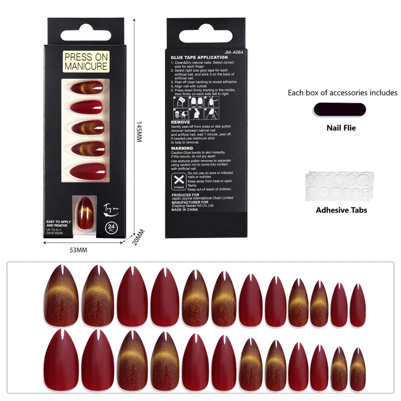 - 24 Nails in Various Sizes - Various nail sizes ensure a totally custom fit, plus we give you extras just in case! Each set comes complete with a storage box, nail glue, double-sided nail file, cuticle stick.