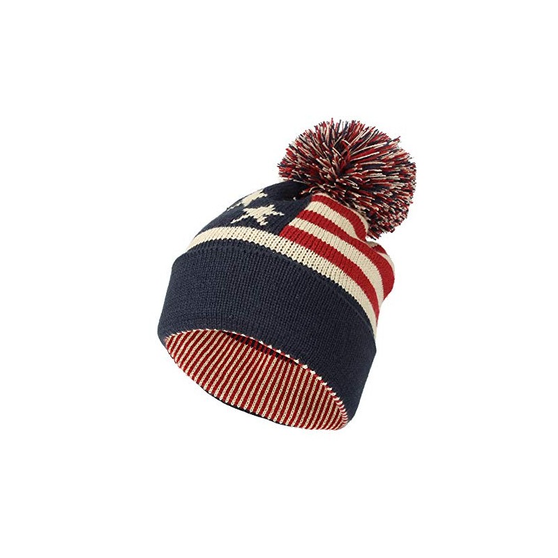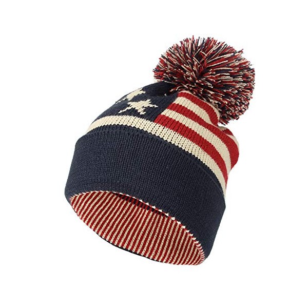 WITHMOONS Knit US Canada Flag Union Jack Pom Beanie Hat JZP0027 (Navy)