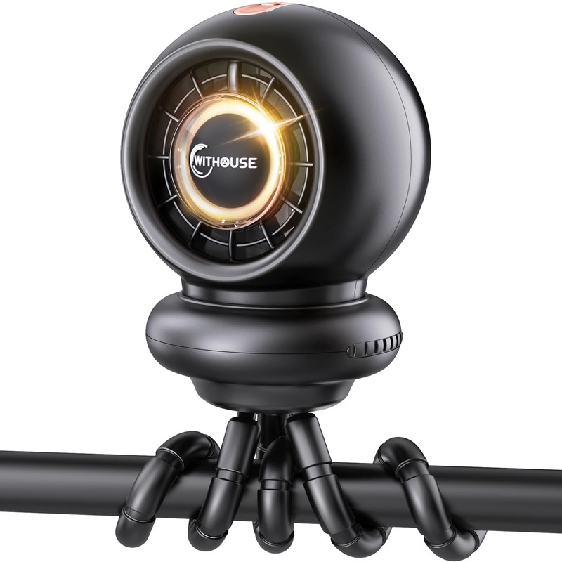 WITHOUSE Stroller Fan, Battery Operated Baby Stroller Fans, 8000mAh Rechargeable Fans, 75° Auto Oscillation Portable Fan, 5-12H Runtime, 4 Speeds Wind, Detachable Base & LED Display