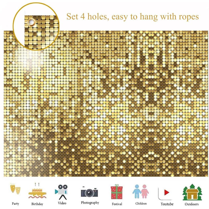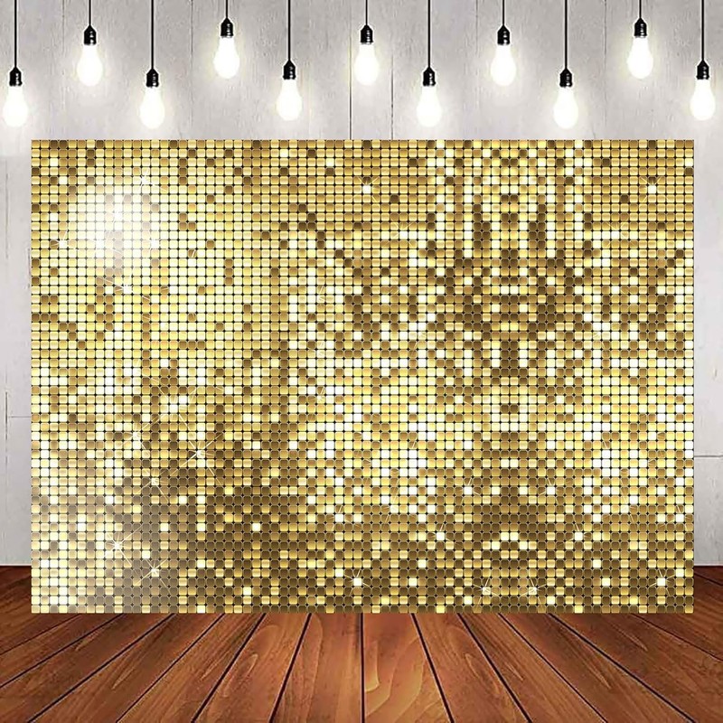 - Unique Design: Shiny gold squares backdrop cake table wall decoration photography background party banner photo studio props, and help us remain the time of your friends and family celebration time, will make anyone feel like a star !