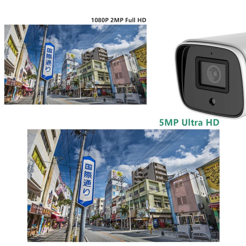 - 【5.0MP HD & H.265 Compression】The 5.0MP ultra HD CMOS and HiSilicon SoC delivers crystal clear & smooth video 24/7.Max resolution 2592 x 1520, and triple streams available. With H.265/H.264 Compression, more records would be stored on less hard drive capacity.