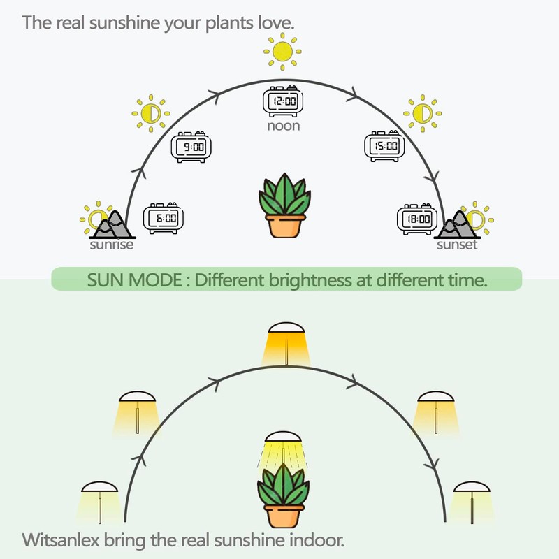 • 【Itelligent Dimmable Control】 - It can automatically simulate the change of real sunshine intensity daily. Also you can set it manually.