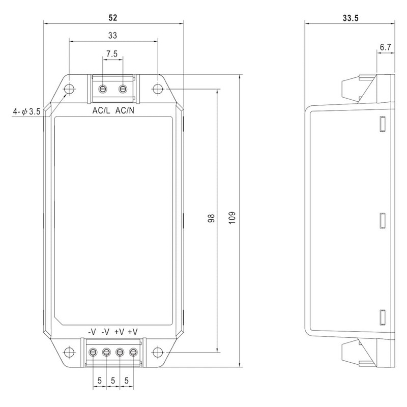 • Dimensions (L x W x H): 109 x 52 x 33.5 mm.