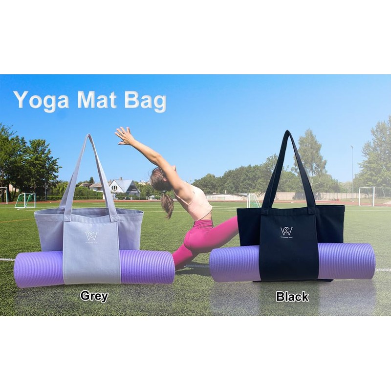 - Stylish Yoga Mat Bag: Simple and stylish canvas tote bag designed to carry a standard size yoga mat and other small items.