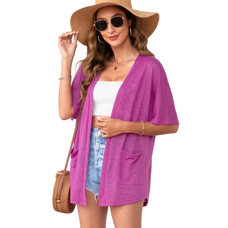 Wiwclo Women's 2025 Summer Lightweight Cardigan Short Sleeve Open Front Casual Loose Cover Ups with Pockets, A05-magenta, S