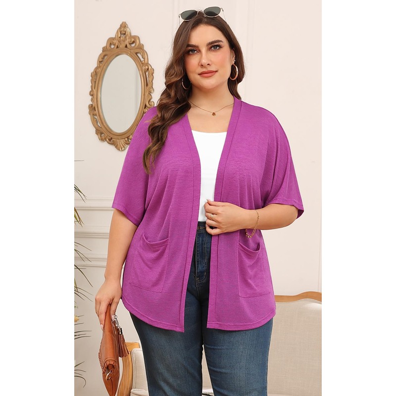 - Features: basic and stylish kimono cardigans for women. This v neck open front cardigan duster features a unique texture, 3/4 short sleeve, loose fit style, curved hem, with two front side pockets and drape cape making it flowy and elegant for wearing. This lightweight summer cardigan can pair with many clothes in your wardrobe, very flattering.