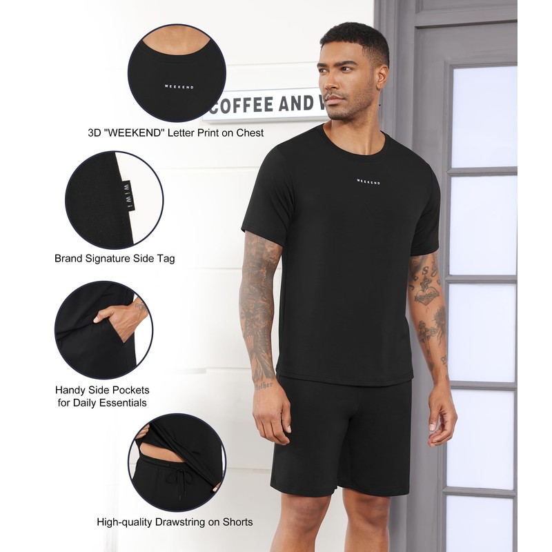 - Premium Design: WiWi 2 piece men’s outfit set includes a short sleeve sweatshirt and relaxed-fit shorts. Design highlights include a raised “WEEKEND” chest print, a subtle side tag on the shirt, and high-quality custom drawstrings on the shorts. Functional side pockets and a tag-free design enhance both comfort and practicality