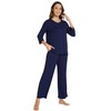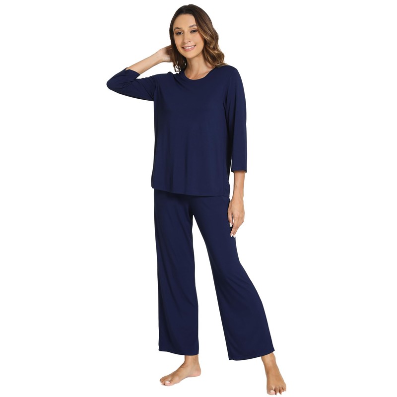 WiWi Pajama Sets for Women Viscose from Bamboo 2 Piece 3/4 Sleeve Sleepwear with Pocket Crew Neck Pajamas S-XXL,Navy,Large