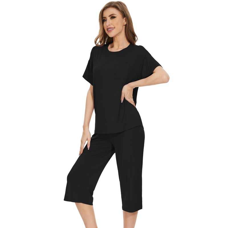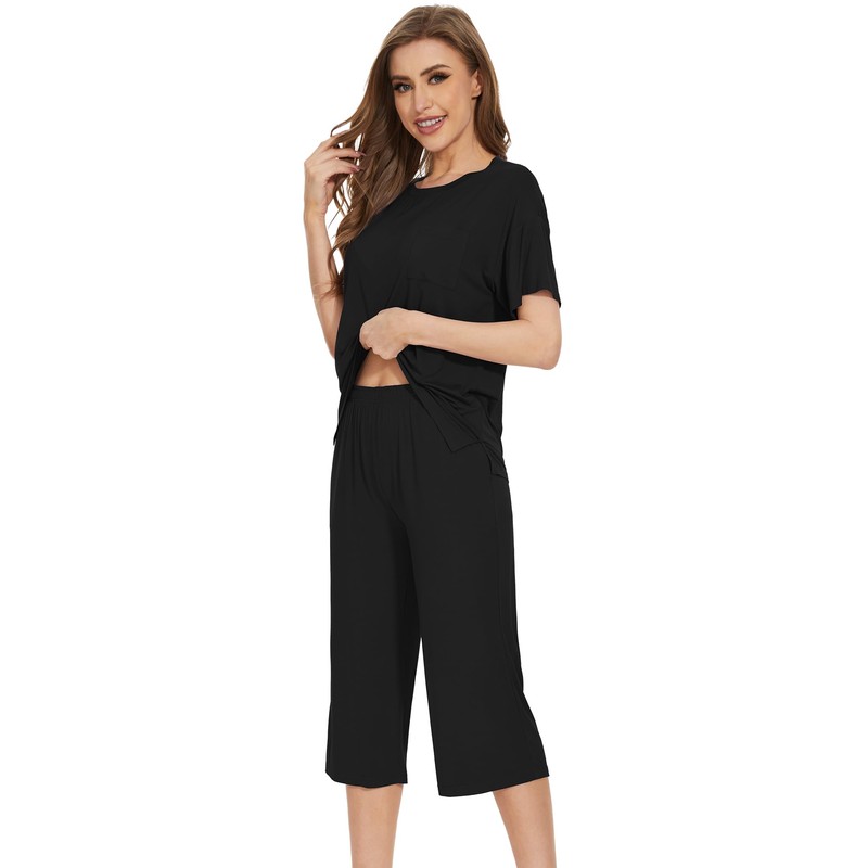 WiWi Pajamas for Women Bamboo Viscose Pajama Sets Loose Comfy Sleepwear with Pockets S-XXL, Black, Small