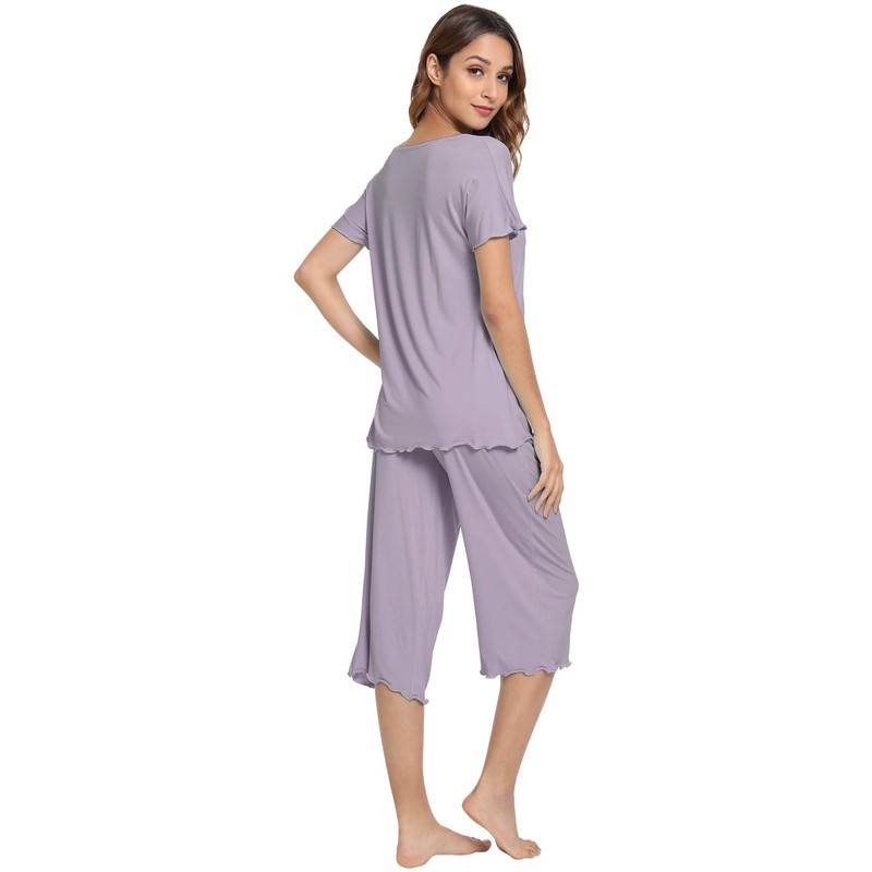 WiWi Womens Bamboo Pajamas Soft Pajama Sets Comfy Short Sleeves Loungewear Plus Size Sleepwear Top with Capri Pants Pjs S-4X, Violet, X-Large
