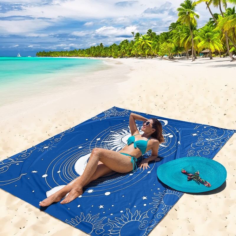 WIWIGO Beach Blanket Waterproof Sandproof Beach Mat 79" X 83" /10'x9'for 2-8 Adults Quick Drying Outdoor Picnic Mat Beach Accessories for Travel, Camping, Hiking