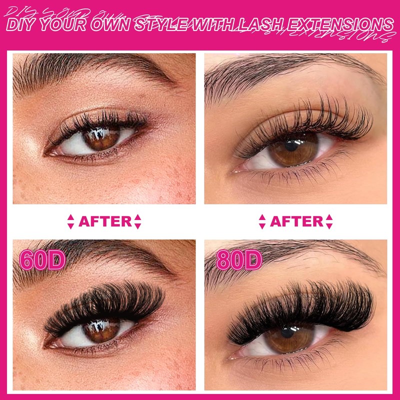 - Volume Lash Clusters Kit: Do you want a fluffy lash extension kit? This natural eyelash extension kit will meet your needs; Wispy and natural lash clusters fit perfectly to your eyes, giving you a natural look while making your eyes sparkle